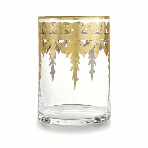 Artisans outside of Florence, beautifully combine luxurious materials, intricate detail and subtle touches. This piece is hand-etch and painted with 24-karat gold highlights. Italian glass, Hand made in Italy.