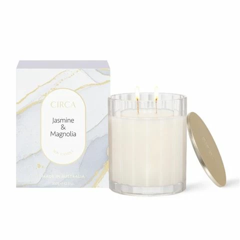 Elevate your senses with Circa Home’s Jasmine & Magnolia Soy Candle. Graceful, refined and utterly feminine, jasmine and magnolia appeal to our romantic souls. With gentle notes of ylang ylang and frangipani, this fragrance conjures up the nostalgia of a summer evening, a floral corsage and the fizz of a new party dress.