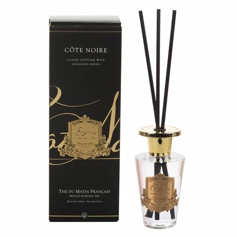 Cote Noire’s French Morning Tea Gold Diffuser with advanced reeds has a regal fragrance which combines top notes of black tea, middle notes of cedar and cut grass with base notes of soft amber and oriental lily. It’s simply refreshing. But this diffuser, housed in a circular flask inspired by the Parisian Art Deco movement is so much more. It has advanced reeds, meaning they never have to be turned or inverted thus minimising the risk of spilling. Meanwhile the French Morning Tea fragrance is filled with the promise of the day ahead. It’s the scent of new beginnings.