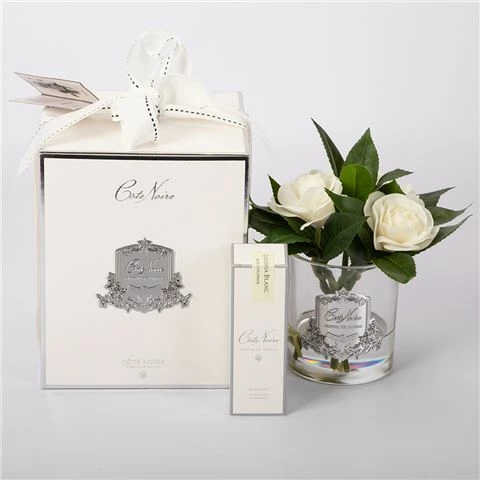 This beautiful life-like Gardenia arrangement has been set in gel infused with a fine fragrance. Presented with one White Gardenia scented spray perfume, you can spray directly onto your flowers to refresh and enhance their scent. This stunning life-like arrangement has been handcrafted, utilising a special natural coating that makes each petal pop. Itβs housed within a glass vase and set with a clear gel.