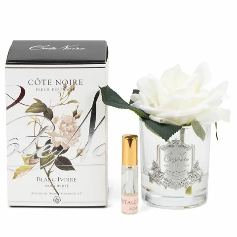 Enclosed with your single Ivory Natural Touch Rose is a small bottle of Rose Petal fragrance, which you can spray directly onto the rose to refresh and enhance the scent. This stunning life-like arrangement has been handcrafted, utilising a special natural coating that makes each petal pop. Itβs housed within a glass jar and set with a clear gel.