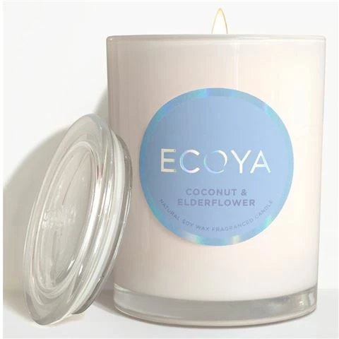 Luxuriate at home with the fruity and invigorating fragrance of Ecoya’s Coconut & Elderflower Metro Candle. It showcases caramel, Indonesian coconut and elderflower alongside pineapple, lemon, lime and bergamot. The Metro Candle blends natural soy wax with Ecoya’s ignature fragrances, which is then poured into contemporary and refined glass jar, then sealed with a glass lid