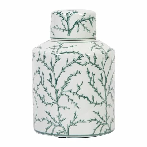 The Flair Décor Green & White Cylinder Jar would make a refreshing addition to your space. In white and decorated with green branches like the first shoots of spring, it will fit into any room. Place it on a shelf or on a coffee table, it will always attract attention. You could also use it to store wrapped sweets or other non-perishable foods.