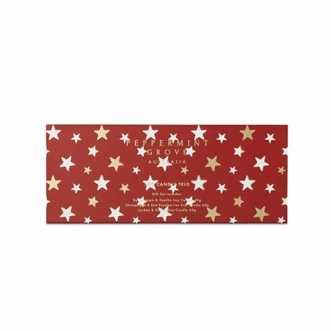 Be enchanted with the Christmas Soy Candle Trio. The gift set features three wonderful fragrances of buttercream and vanilla; champagne and red raspberries; lychee and guava. All candles are poured into beautiful glass vessels with polished lids. Truly delightful, it makes for the perfect festive gift.