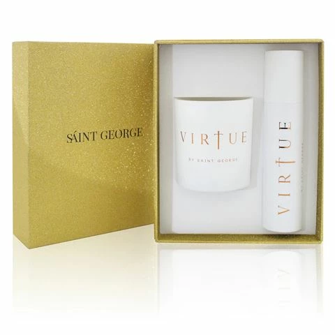 This inspired gift of a Saint George, Virtue Candle and Room Spray leaves your space redolent with a festive scent with notes of sandalwood, patchouli, spice, frankincense and myrrh.