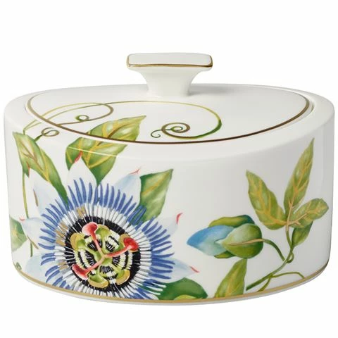 Magnificent orchids, enchanting hummingbirds and colourful butterflies straight from a tropical rainforest – Villeroy & Boch’s Amazonia collection was inspired by naturalist Alexander von Humboldt’s voyage of discovery. This exotic porcelain lidded box adds the finishing touch to your decor wherever you decide to place it.